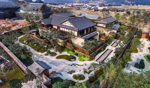 入口景观总体构思以太湖山水为出发点,营造幽静深邃的环境氛围,表现自然、拙朴、空灵、精致的拈花湾生活之禅。