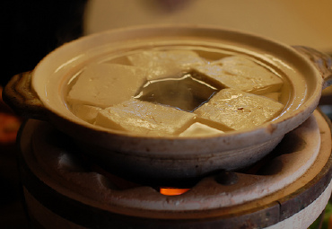 汤豆腐在风雅的京都料理中占有一席之地,以前寒冷的冬天吃豆腐的时候,为了防止豆腐很快冷调,就放在盛有热水的小盆里保温,没想到这样吃起来别有风味,汤豆腐就是这样由来的。汤豆腐在京都四处可见,尤其是寺庙的周围,总能找得到一家汤豆腐料理亭。