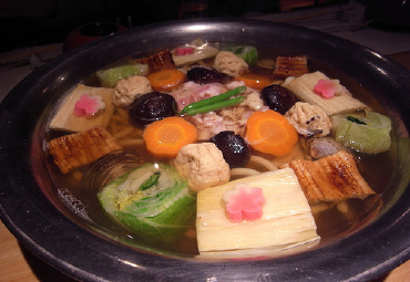 虽然称为乌冬,但其实更像是火锅料理,有些类似日本传统的すき焼き(四喜火锅)。将乌冬面搭配各种蔬菜、肉类、海鲜等和高汤一起在土锅中煮制而成,味道非常浓厚醇美,很适合在寒冷的冬季里享用。